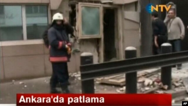 | Katika picha hii, wafanyakazi wa huduma ya dharura wakiwa upande wa mbele wa ubalozi wa Marekani baada ya shambulio la mlipuko katika ubalozi huo mjini Ankara, Uturuki, leo Februari 1, 2013. |